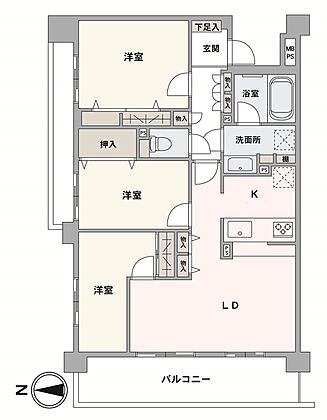 西・北の角住戸で、室内に心地よい風が舞い込む住まい。LDKに洋室が2部屋隣接しており、ご家族とコミュニケーションがとりやすいレイアウトです。