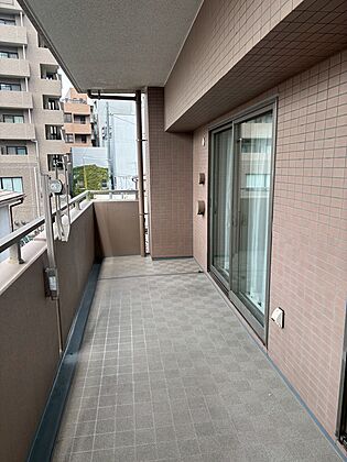 【バルコニー】LDKから出入り可能な西向きバルコニー。奥行きがあり、ストレスなく洗濯物を干していただけます。物干し金具付きです。
