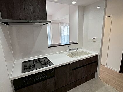【キッチン】調理中でもご家族との会話が弾む対面式キッチン。食器洗乾燥機付きで、毎日の家事をサポートしてくれます。食後の片付けが時短になり、プライベート時間も充実。