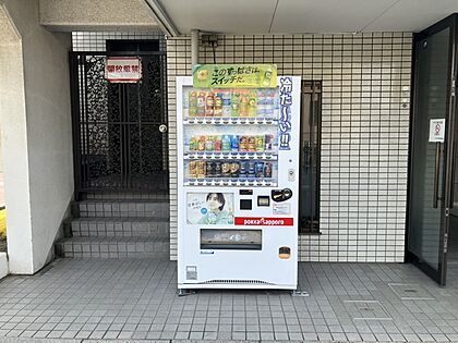 【自動販売機】エントランス付近に自動販売機が設置されています。コンビニやスーパーまで行かなくても、24時間いつでも飲み物を購入していただけます。