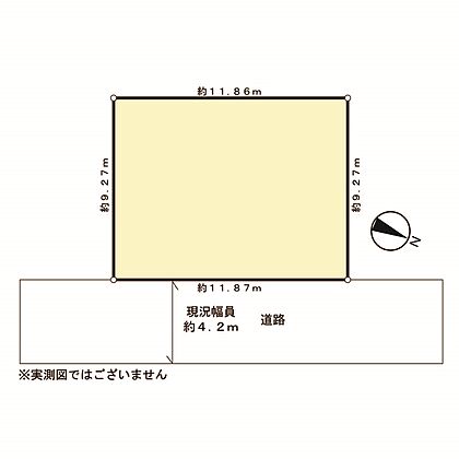 | 土地面積/坪(坪単価) | 110.02m2(実測)/33.34坪(104.40万円) | 代表的な接道 | 一方 私道 (位置指定) 北東 4.2m ※詳細は備考欄をご確認ください |