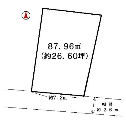| 土地面積/坪(坪単価) | 97.96m2/29.68坪(6.70万円) | 代表的な接道 | 一方 南 2.6m ※詳細は備考欄をご確認ください |