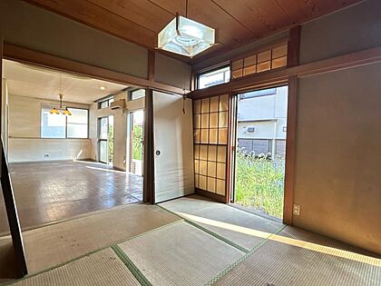 【リフォーム中10/20】1階和室の別角度写真です。洋室に変更予定です。床はフローリング仕上げ、天井壁クロスと襖は張替え予定です。南向きに加え大きな掃き出し窓もございますので、日当たりだけでなく風通し