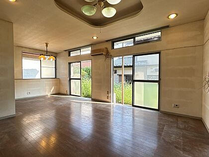 【リフォーム中10/20】南側にある18.5帖のリビングです。床はフローリング重ね張り、天井壁のクロス張替を行います。お庭を眺めながら家族団らんすることもできますね。