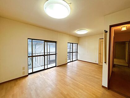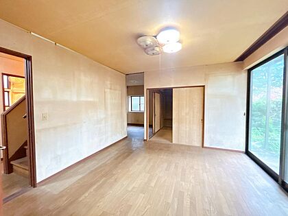 【リフォーム前】約15.5帖LDKの別角度写真です。南西側に大きな掃き出し窓がございますので、お庭を眺めながら家族団らんすることもできますね。クロス張替、照明交換予定です。