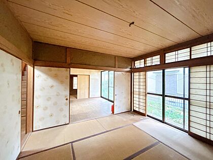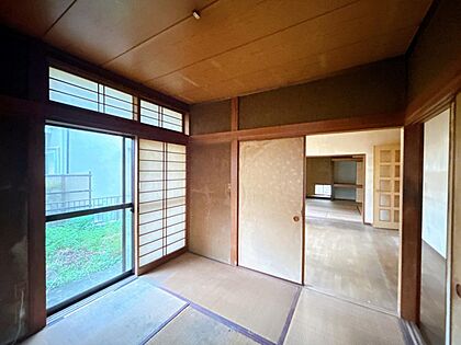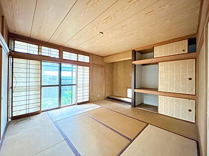 【リフォーム前】1階8畳和室の別角度写真です。押入れは襖張替予定です。来客用の寝具を収納することもでき、客間としてもご利用いただけますね。
