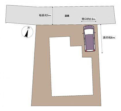 【区画図】駐車場はカーポート付きです。幅員約2.8m、奥行約6mあります。