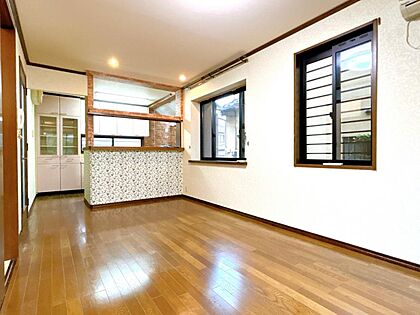【リビング】リビングの写真です。キッチンからでもリビングの様子をうかがうことができ安心ですね。