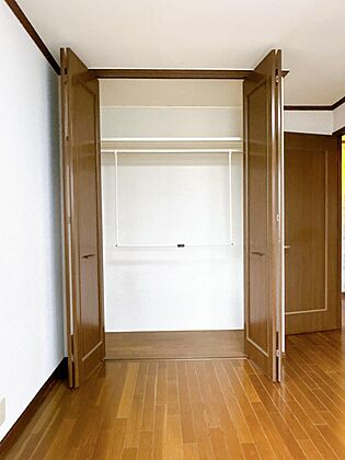 【収納】2階東側洋室の収納写真です。天井までの高さのクローゼットがございますので、たくさんのお洋服が収納できお部屋がスッキリ片付きますね。