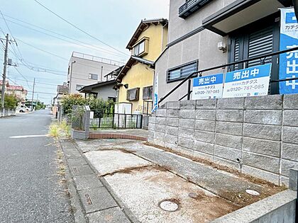 【外観】外観の別角度写真です。駐車1台横付け可能です。車の出入りがスムーズになりそうですね。