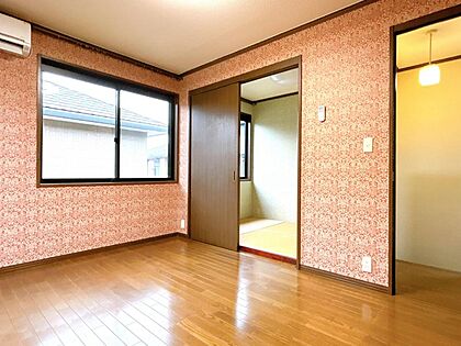 【洋室】2階西側洋室の写真です。南側に大きな掃き出し窓がございますので日当たりも良く気持ちよく過ごせそうですね。