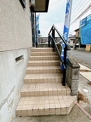 【玄関アプローチ】玄関アプローチの写真です。階段には手すりがございますので、お子様でも安心して生活していただけますね。
