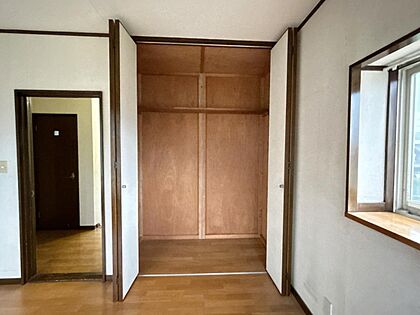 •  【2階東側洋室】クローゼットの写真です。両開きタイプの大容量のクローゼットは棚付きで収納力も高く、衣類や日用品の整理に便利です。