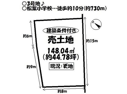 | 土地面積/坪(坪単価) | 148.04m2/44.86坪(34.90万円) | 代表的な接道 | 公道 東 5m ※詳細は備考欄をご確認ください |