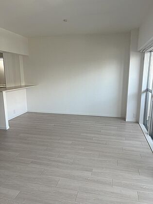 室内(2025年8月)撮影。リビングです。可動間仕切りを開けると洋室と繋がり、より広々とご利用いただけます。