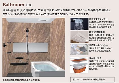 一日の疲れを癒すバスルーム。カビの発生を抑制し、雨の日の洗濯物の乾燥にも便利な浴室換気暖房乾燥機付きです!※施工例