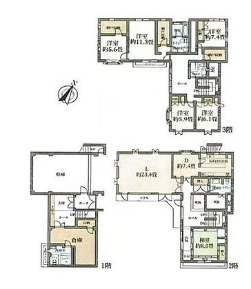 | 間取り | 6SLDK | 構造及び階数 | 木造 3階建て |