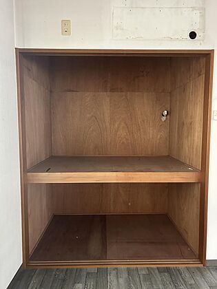 【リフォーム中/2階リビング収納】2階のリビングスペースにある収納です。ドアを交換し、中は壁紙で綺麗に仕上げます。