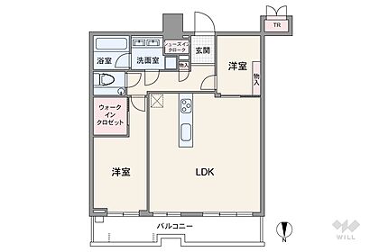 間取りは専有面積71.3平米の2LDK。バルコニー面積は11.9平米です。