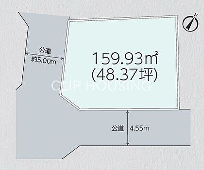 | 土地面積/坪(坪単価) | 159.93m2(登記簿)/48.46坪(36.90万円) | 代表的な接道 | 角地 公道 南西 5m、南東 4.5m ※詳細は備考欄をご確認ください |