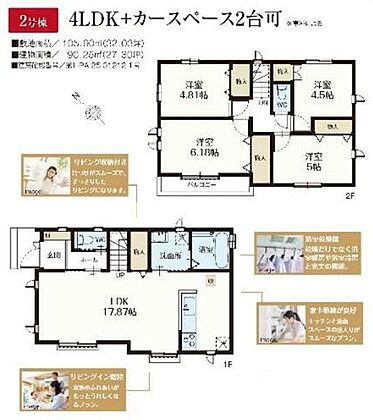 | 建物面積 | 90.25m2 | 土地面積 | 105.90m2(実測) |