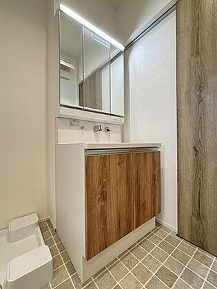 シャワー付水栓の洗面台はシャンプーや毎日の掃除に便利!ゆとりの洗面スペースで朝の身支度も快適スムーズ♪