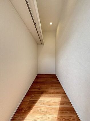 ウォークinクローゼットです♪棚とハンガーパイプが設置され収納しやすく、大きな荷物も収納できます!