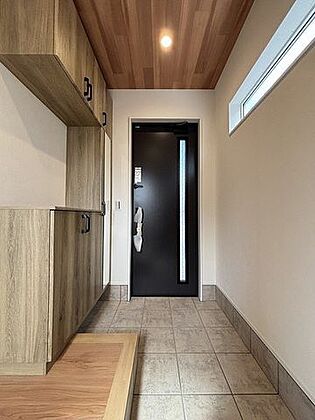 窓から光の入る明るい玄関で、家族やお客様をお迎えできます。