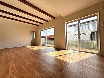 見せ梁が美しいリビングは広々としており、開放感のある空間となっています。