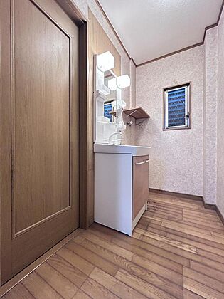【同仕様写真】洗面化粧台はPanasonic製の新品に交換します。鏡の裏側は収納になっています。洗面ボウルは底が平らなので、つけ置き洗いなどの家事でも活躍します。