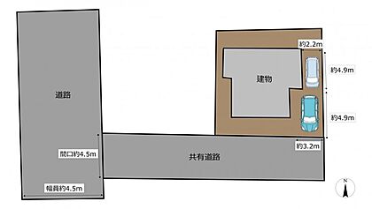 【配置図】普通車1台、軽自動車1台駐車可能となります。自宅に車が停められる生活は駐車場を借りなくて済むので家計にもやさしい生活ですよ。
