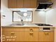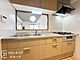 モダンなデザインのキッチンで、スタイリッシュな印象を与え、インテリアに調和します
