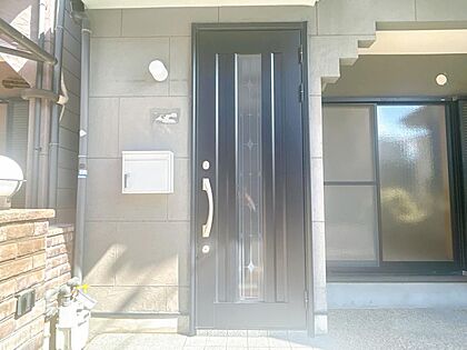 【リフォーム済】玄関の外観です。玄関はお家の顔となる部分。お客様が最初に目にする場所だからこそ、第一印象が大切ですね。
