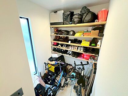 〜シューズインクロークのある玄関〜 ・玄関横にシューズインクロークをご用意。 ・追加の靴置きとしてはもちろん、スキー・ゴルフなど趣味の用具の置場としてもご利用いただけます。
