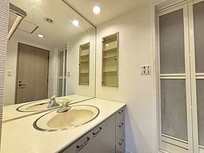 鏡が大きいので、朝の慌しい時間もご家族並んで身支度できますね♪