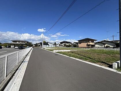 前面道路です。住宅地につき落ち着いた新生活を始められそうです。
