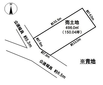 | 土地面積/坪(坪単価) | 496.00m2(実測)/150.3坪(2.40万円) | 代表的な接道 | 二方 公道 南 6.5m、南西 5.3m ※詳細は備考欄をご確認ください |