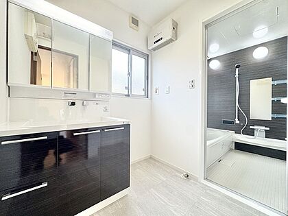 洗面所には、三面鏡の洗面台を完備しております。お支度の際も安心ですね。