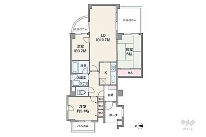 •  間取りは専有面積62.25平米の3LDK。バルコニー面積は12.08平米です。