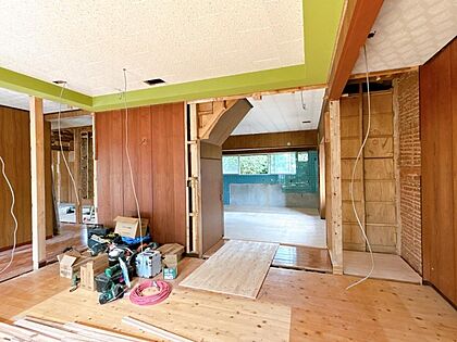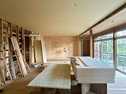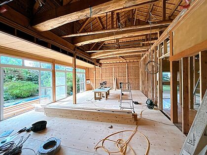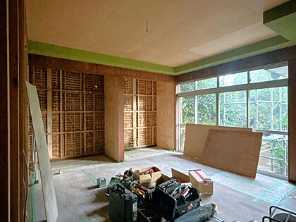 【リフォーム中/約23帖リビング】リビングはフローリング仕上げを行い、壁・天井はクロスを貼る予定です。