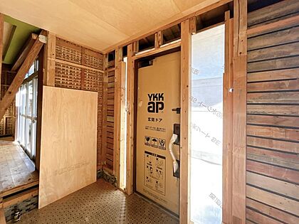 【リフォーム中/玄関内観】玄関は約3帖の広さがあるので、大人数が集まっても余裕がありそうです。玄関ドアは交換を行いました。