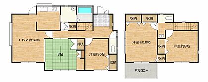 【現況】間取り図です。4LDKの2階建てのお家です。キッチン横が洗面所なので家事もしやすいですね。