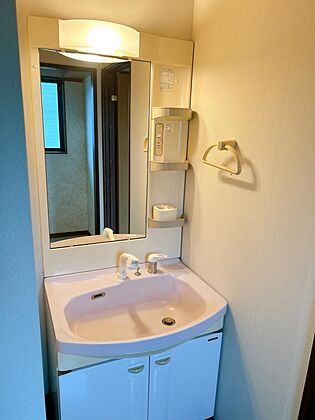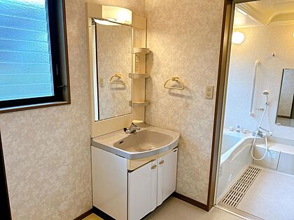 【現況/脱衣・洗面所】洗面化粧台です。朝の身支度に便利です。窓もあるので換気もできるのは嬉しいですね。