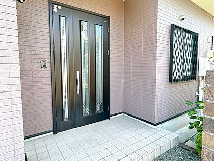 【現況販売/玄関】屋根がついていて雨でも出入りしやすいですね。駐車場も正面にあるのでさっと移動いただけます。