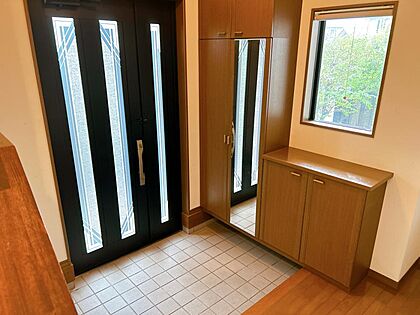 【現況販売/玄関内観】玄関の内観写真です。シューズボックス上部に小窓があります。玄関はお客様を迎えるところなので清潔感がある明るい玄関は魅力的ですね。