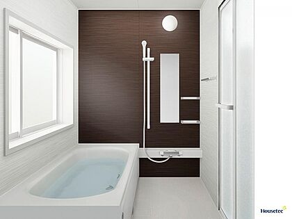 【同仕様写真】浴室はハウステック製の新品のユニットバスに交換します。浴槽には滑り止めの凹凸があり、床は濡れた状態でも滑りにくい加工がされている安心設計です。