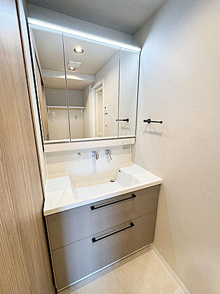 身だしなみを整えやすい事はもちろんですが、鏡の後ろに収納スペースを設ける事により、散らかりやすい洗面スペースをすっきりさせる事が出来るのも嬉しいですね。