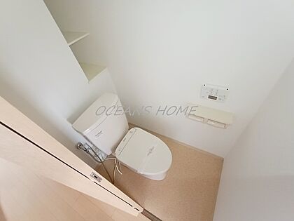 いつでもあたたかく快適な温水洗浄機能付きのトイレです。白を基調としており、清潔感溢れる空間です♪