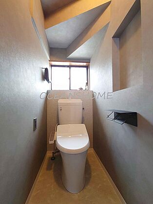 いつでもあたたかく快適な温水洗浄機能付きのトイレです。白を基調としており、清潔感溢れる空間です♪
