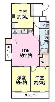ウォークインクローゼット付きで、お部屋を広くお使いいただくことができます。